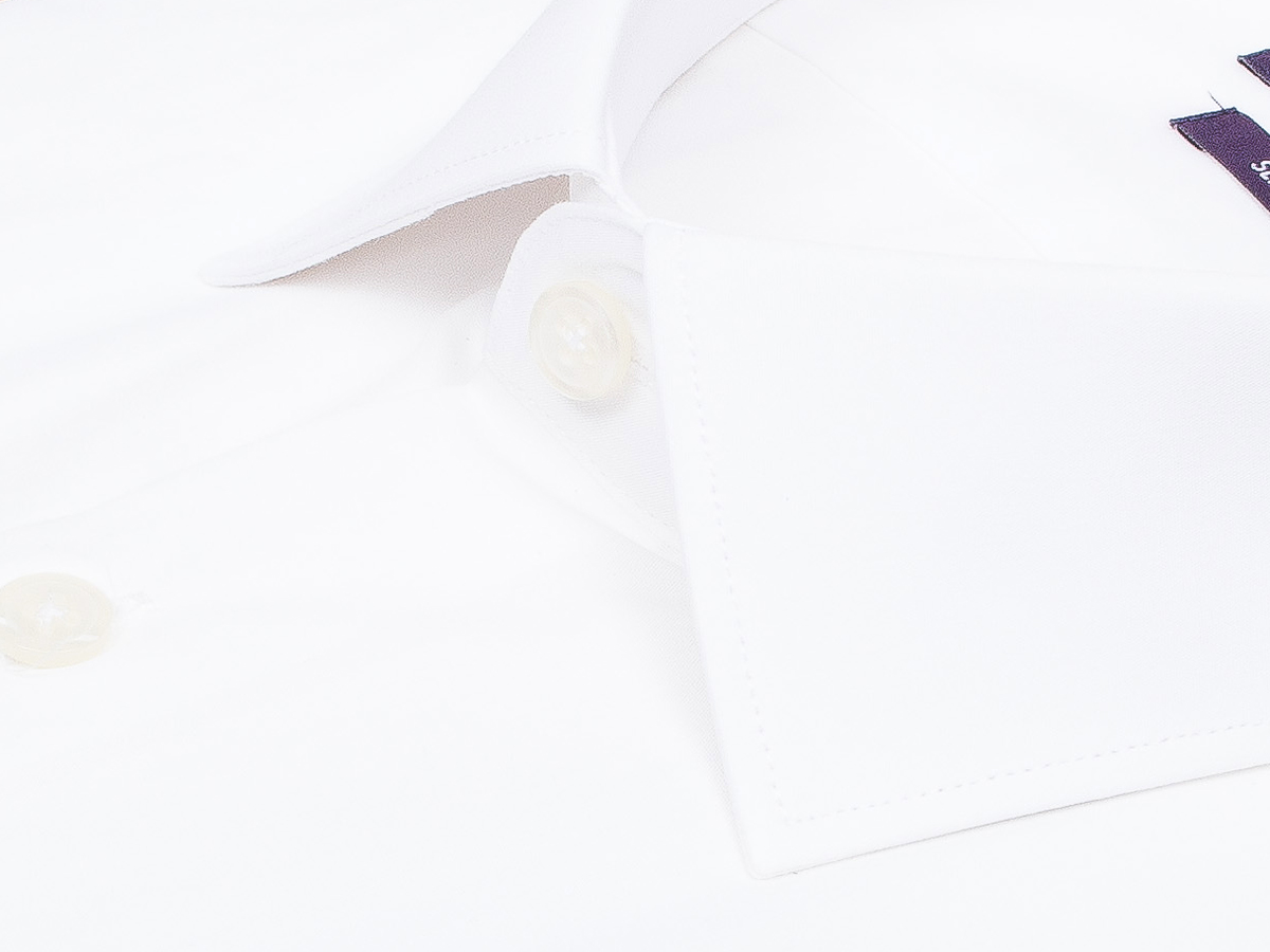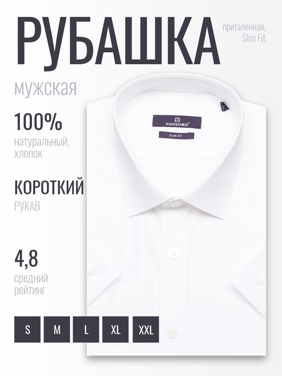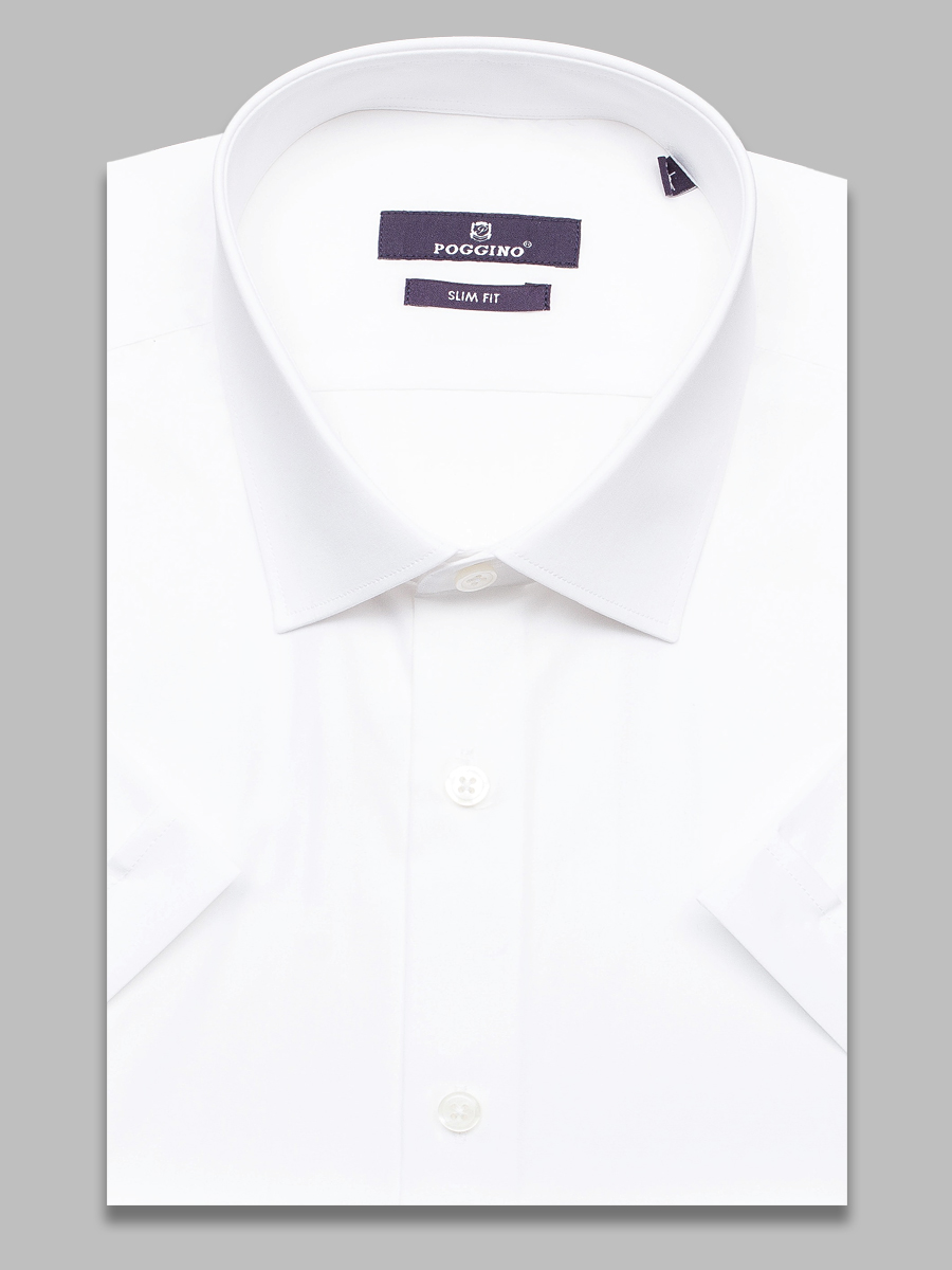 Приталенная мужская рубашка Poggino 7018-02 белого цвета с коротким рукавом и классическим воротником из натуральной 100% хлопковой ткани.