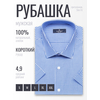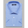 Синяя приталенная рубашка в клетку с коротким рукавом