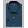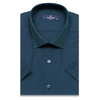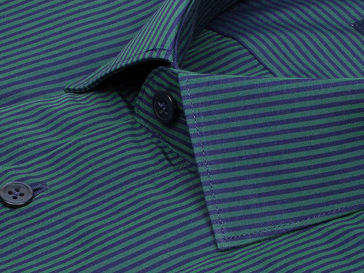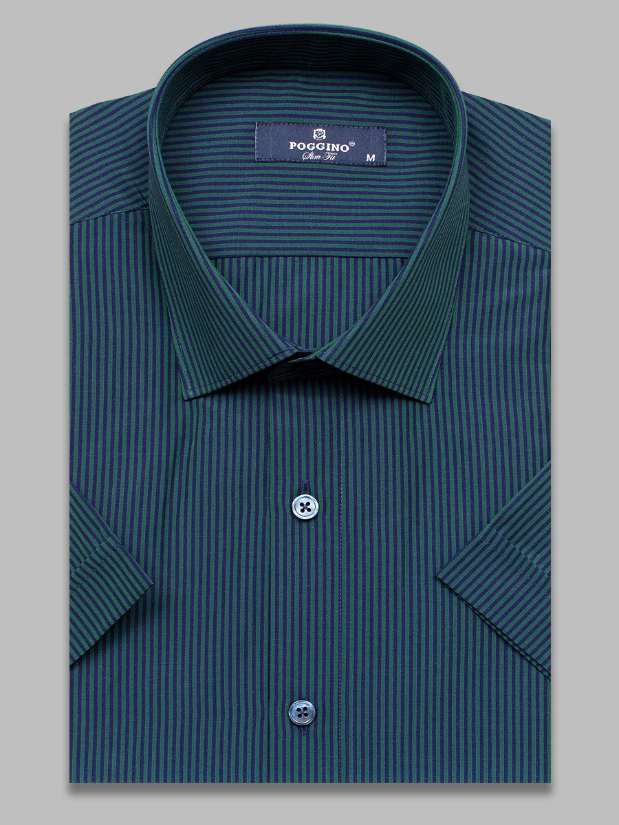 Зеленая приталенная рубашка в полоску с коротким рукавом