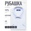 Голубая приталенная рубашка в клетку с коротким рукавом