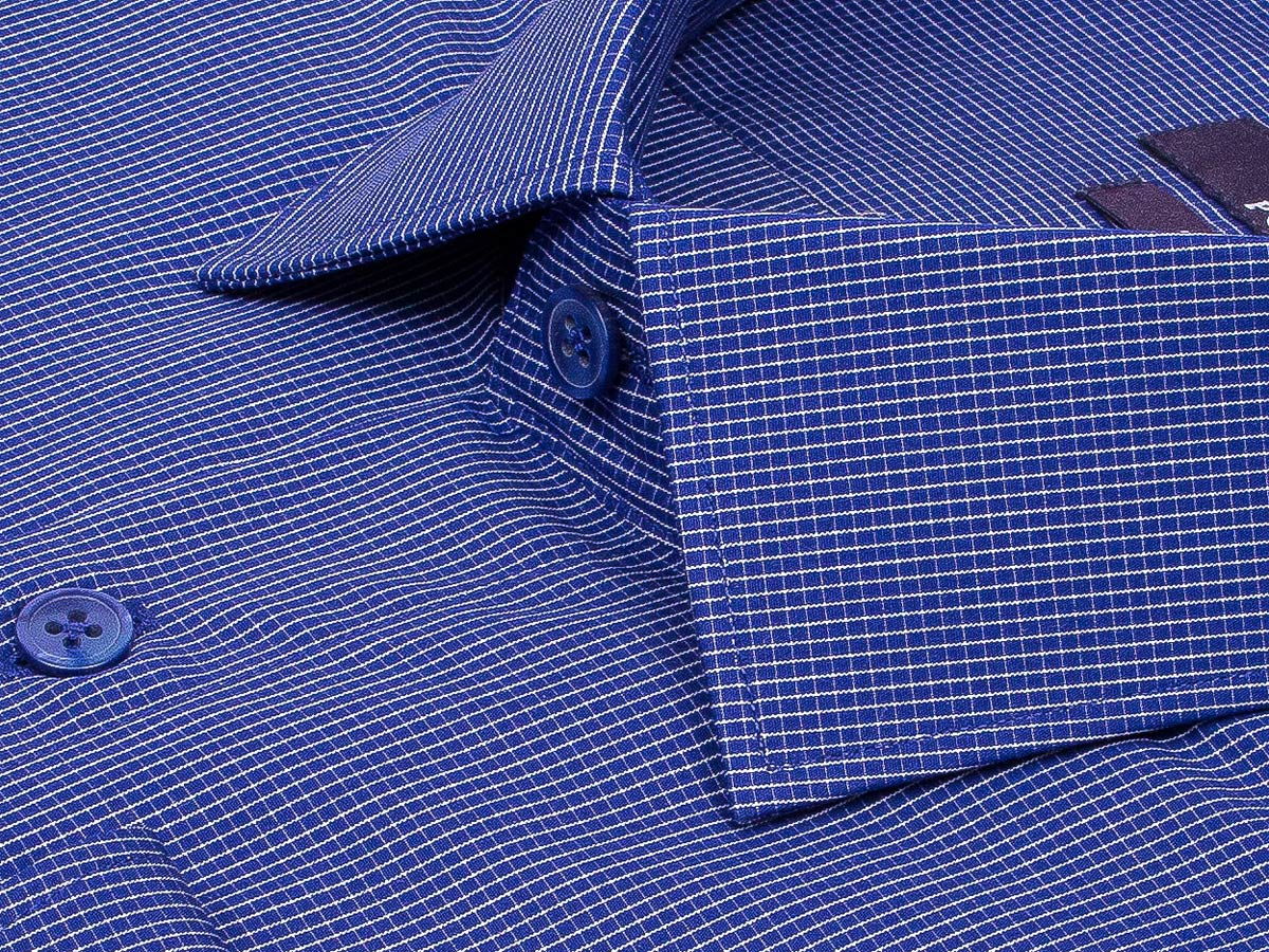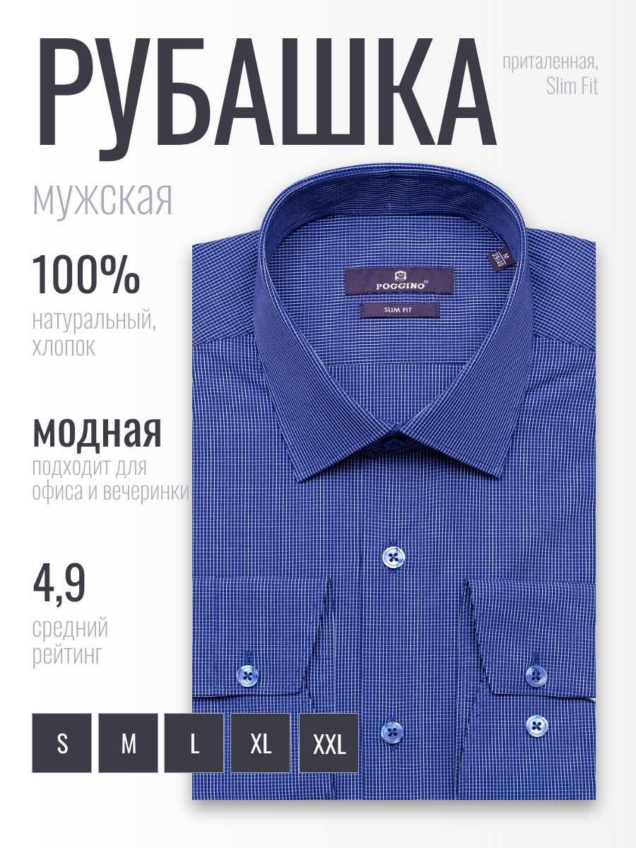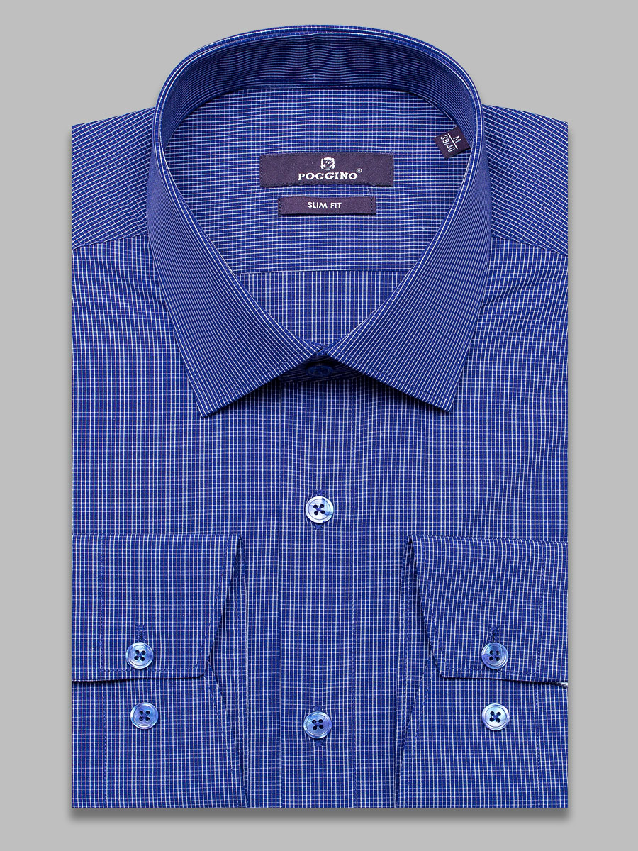 Мужская рубашка Poggino 7020-32 в синем цвете с клетчатым принтом и длинными рукавами. Изготовлена из 100% хлопка, что обеспечивает комфорт и долговечность.