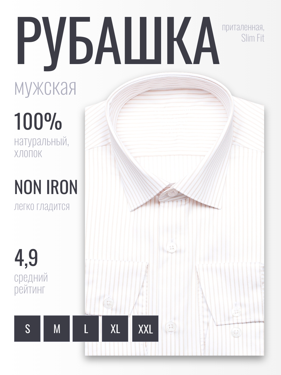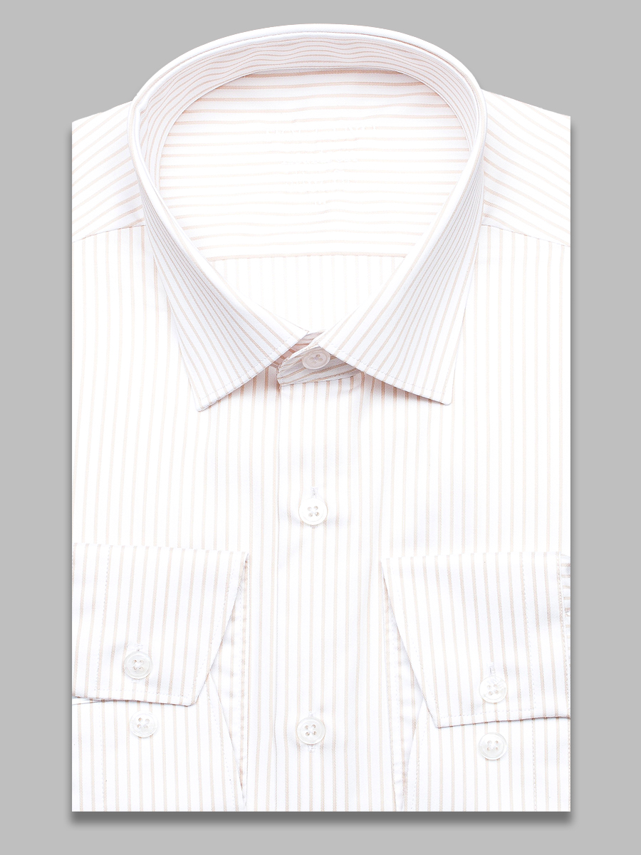 Бежевая мужская рубашка Non Iron в полоску с длинными рукавами