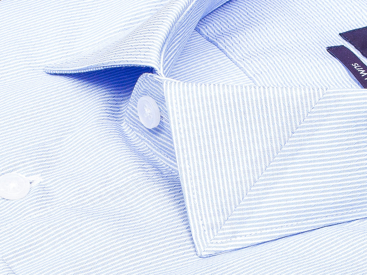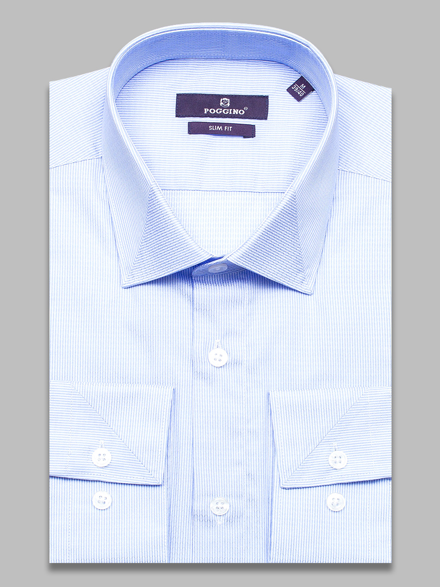 Голубая приталенная рубашка в полоску с длинными рукавами