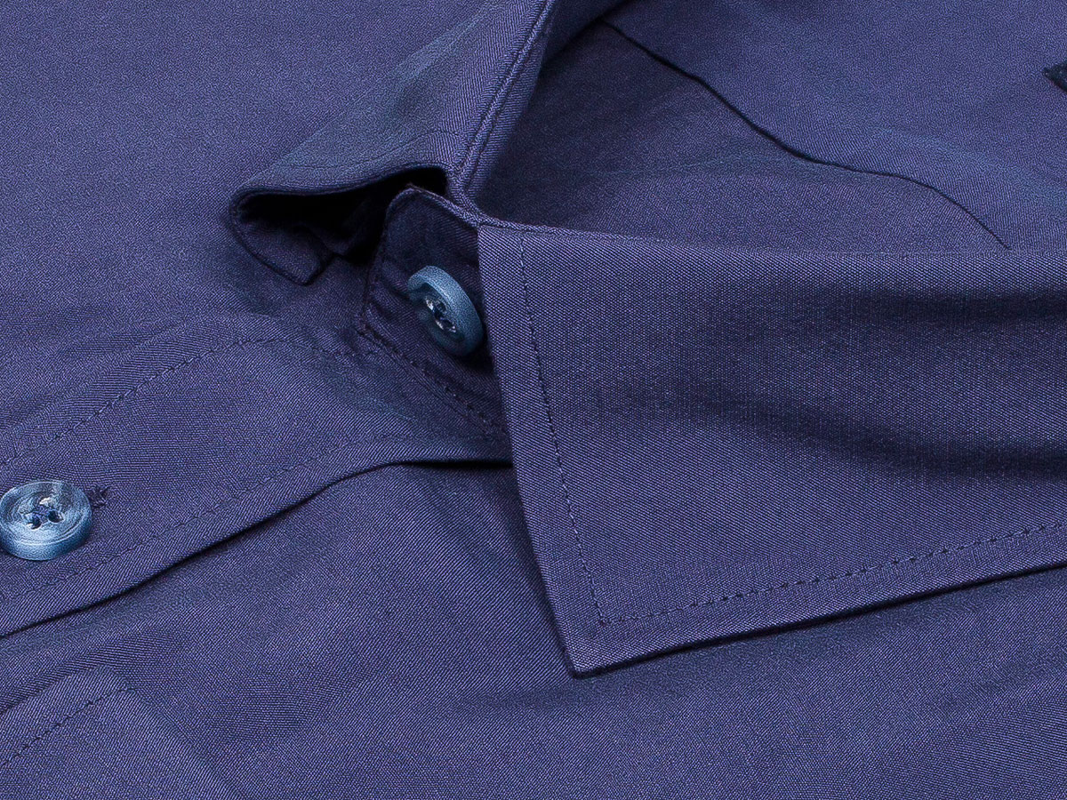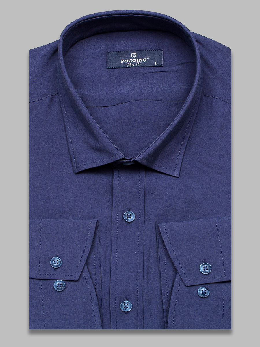 Темно-синяя приталенная мужская рубашка с длинными рукавами