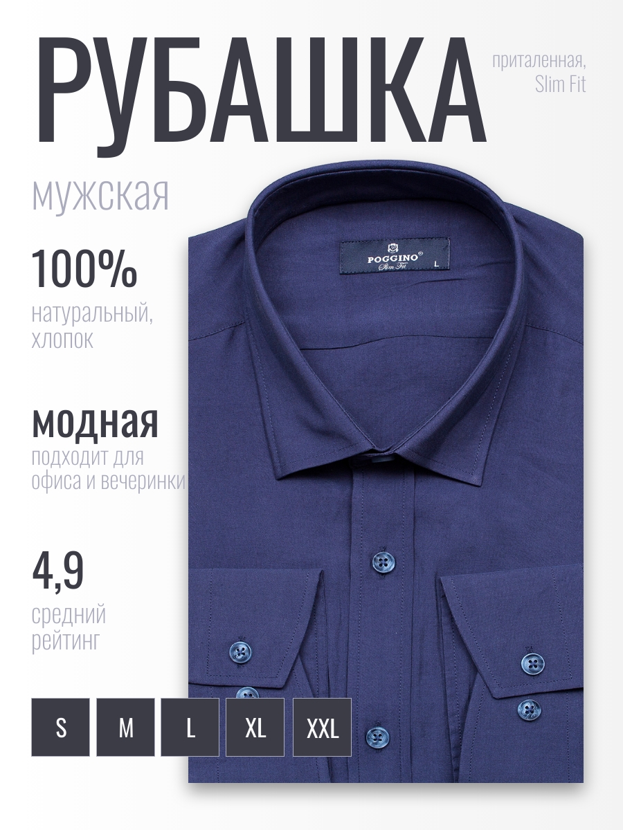 Мужская рубашка Poggino 2000-17: стиль и комфорт в одном изделии Приталенная мужская рубашка Poggino 2000-17 темно-синего цвета с длинными рукавами и классическим воротником из плотной натуральной 100% хлопковой ткани. Классический стиль и темно-синий цвет Эта рубашка выполнена в классическом стиле, что делает ее подходящей для любого случая. Темно-синий цвет рубашки придаст вашему образу элегантности и строгости. Прилегающий силуэт и длинные рукава Прилегающий силуэт рубашки обеспечивает отличную посадку и комфорт при носке. Длинные рукава позволяют сохранять тепло в прохладную погоду и защищают от ветра. Состав и качество ткани Рубашка изготовлена из 100% хлопка, что гарантирует мягкость и натуральность материала. Размер и особенности модели Модель без карманов и застежки на пуговицах, что делает ее удобной и практичной в использовании. Выбирая мужскую рубашку Poggino 2000-17, вы получаете стильное и комфортное изделие, которое прослужит вам долгое время и станет незаменимым элементом вашего гардероба.Фотография рубашки в коробке не является публичной офертой, и используется производителем, только в качестве демонстрации изделия с данного ракурса.