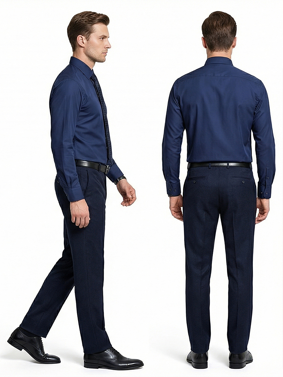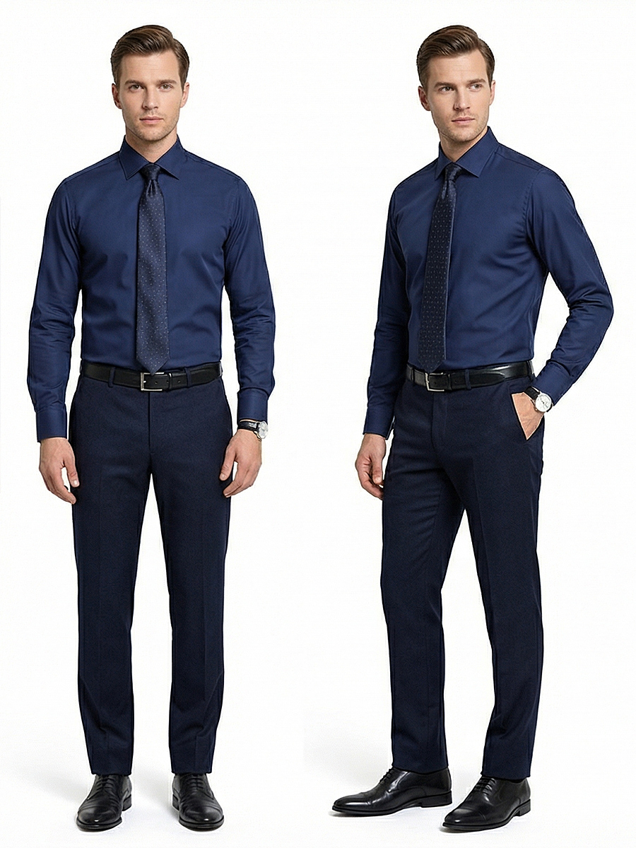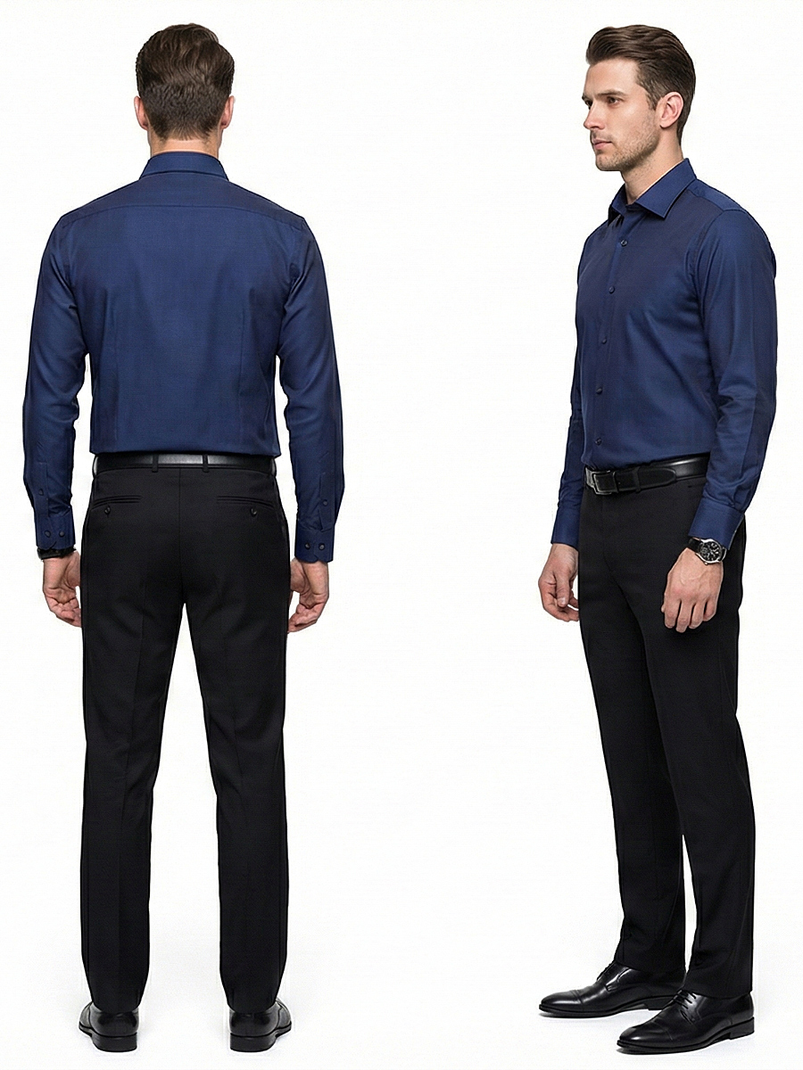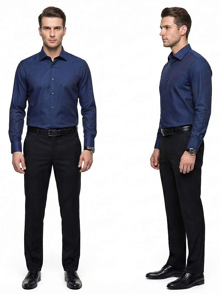 Темно-синяя приталенная мужская рубашка Non Iron с длинными рукавами