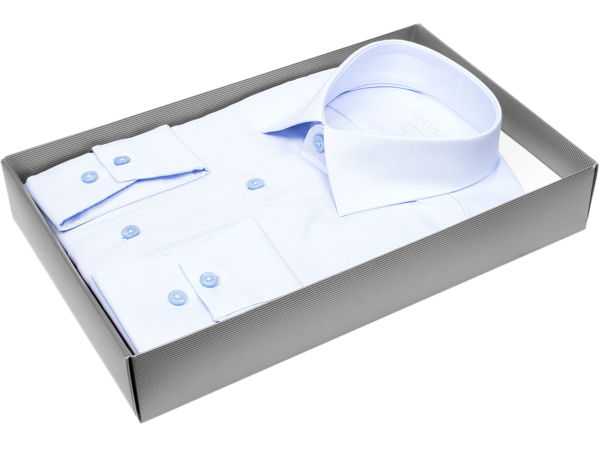 Приталенная мужская рубашка Poggino 3300-021 Non Iron голубого цвета с длинными рукавами и классическим воротником из натуральной 100% хлопковой ткани.