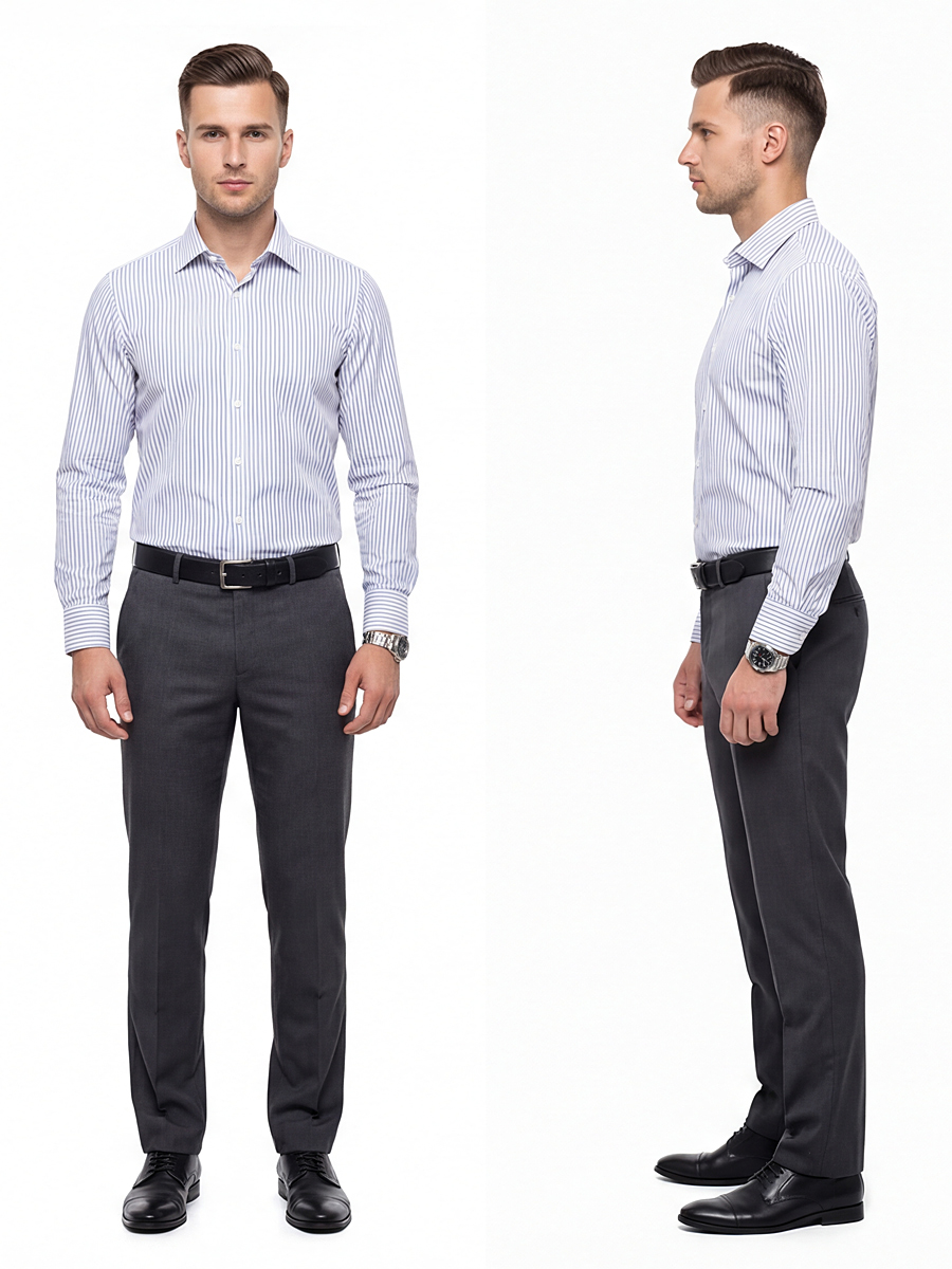Мерки, в таблице размеров на крайней фотографии, сняты непосредственно с рубашек. Перед оформлением заказа, сверьте данные из таблицы размеров со своей рубашкой.