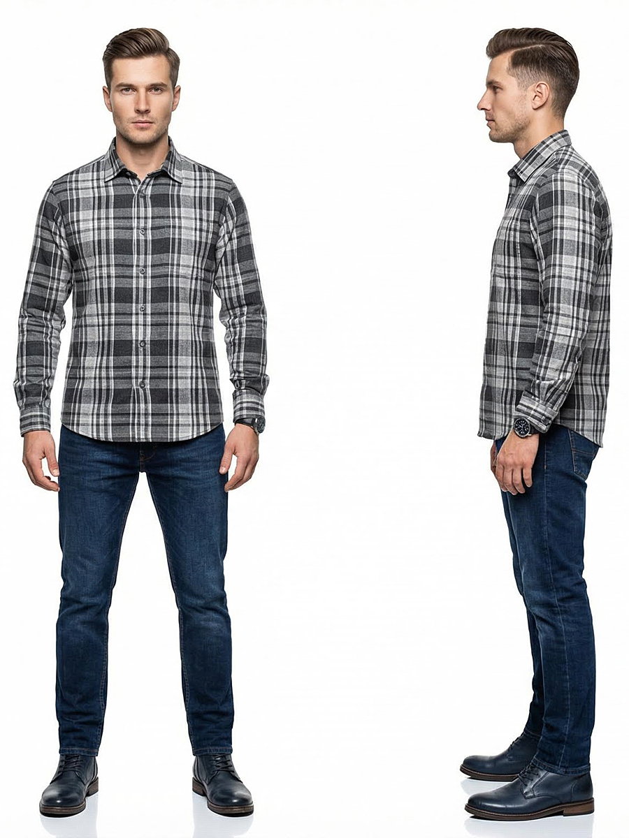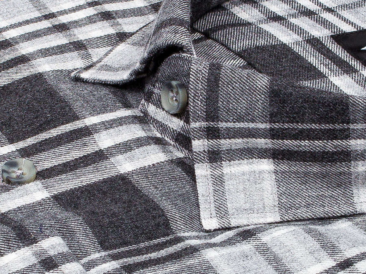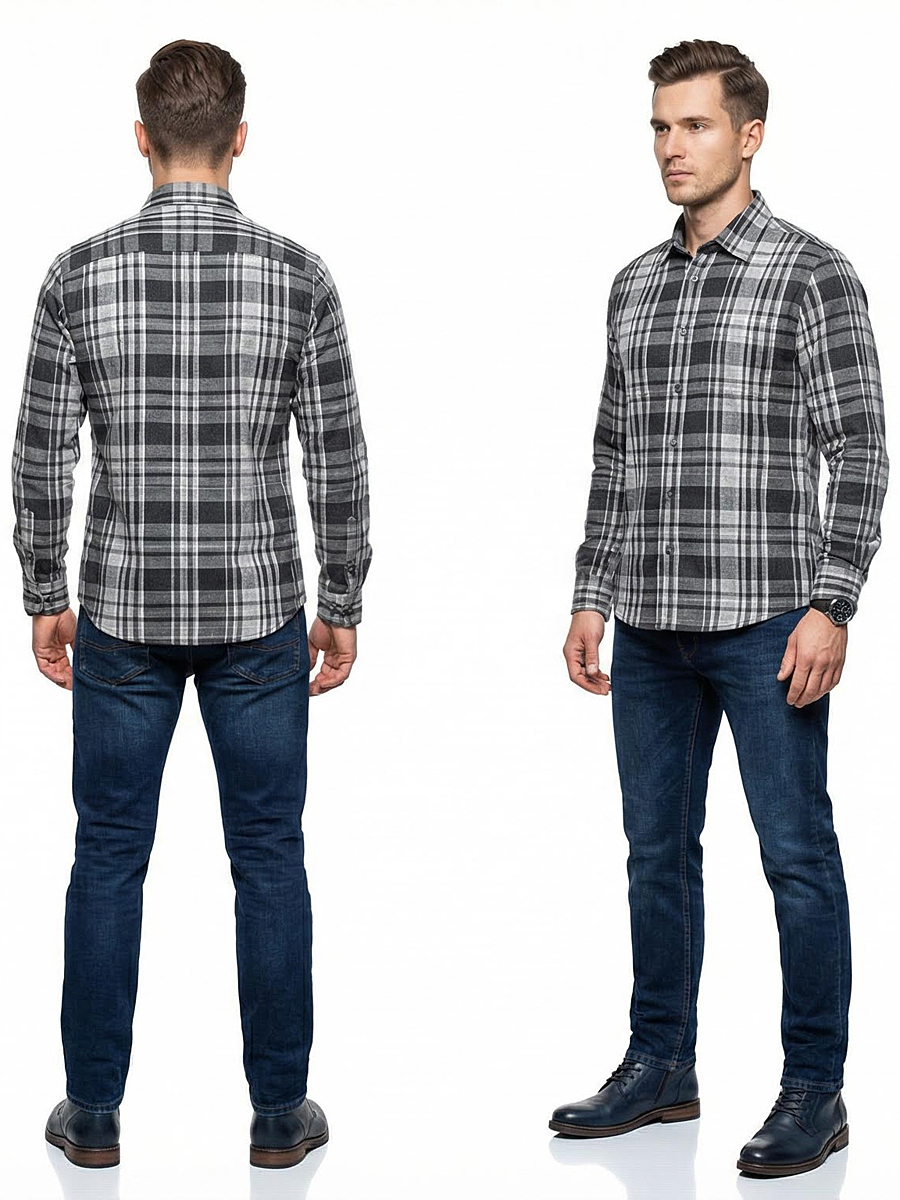 Байковая серая приталенная рубашка в клетку с длинными рукавами