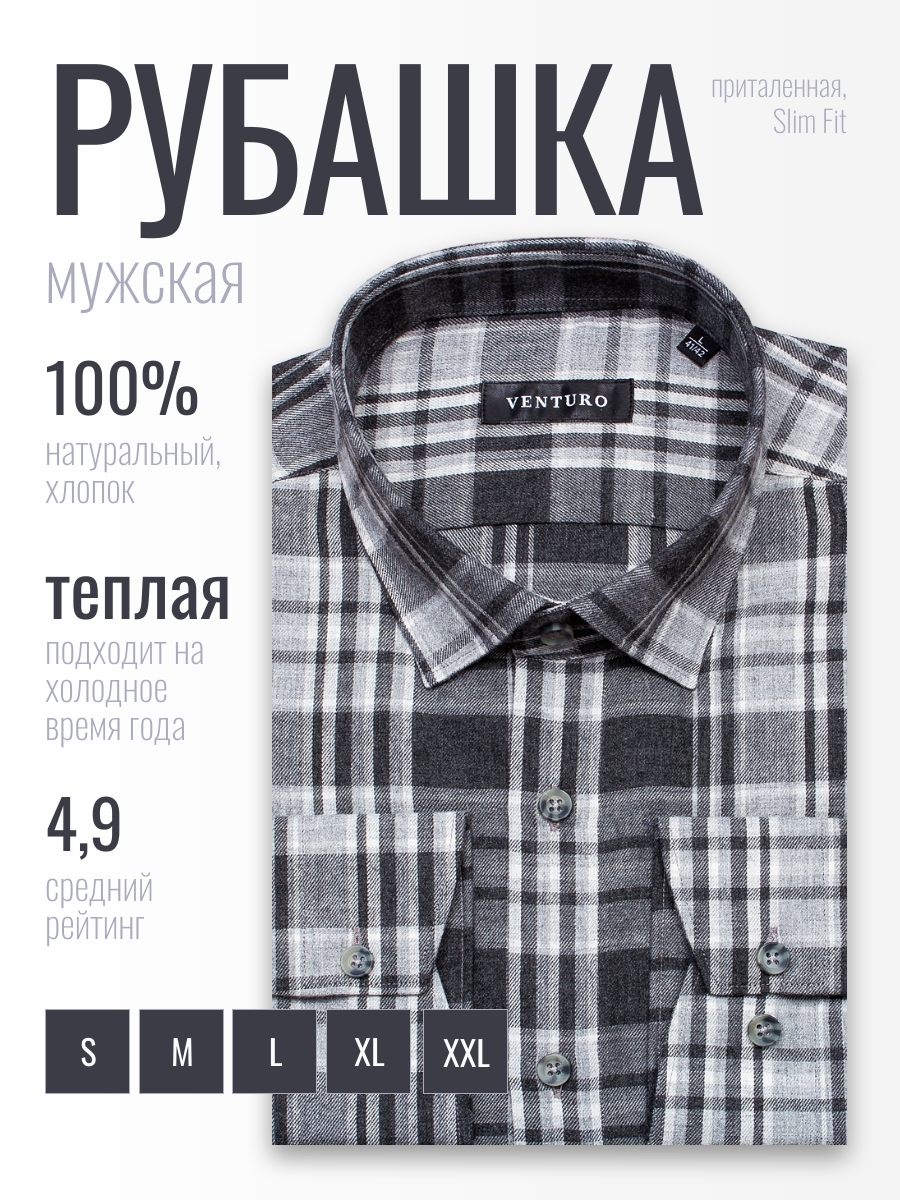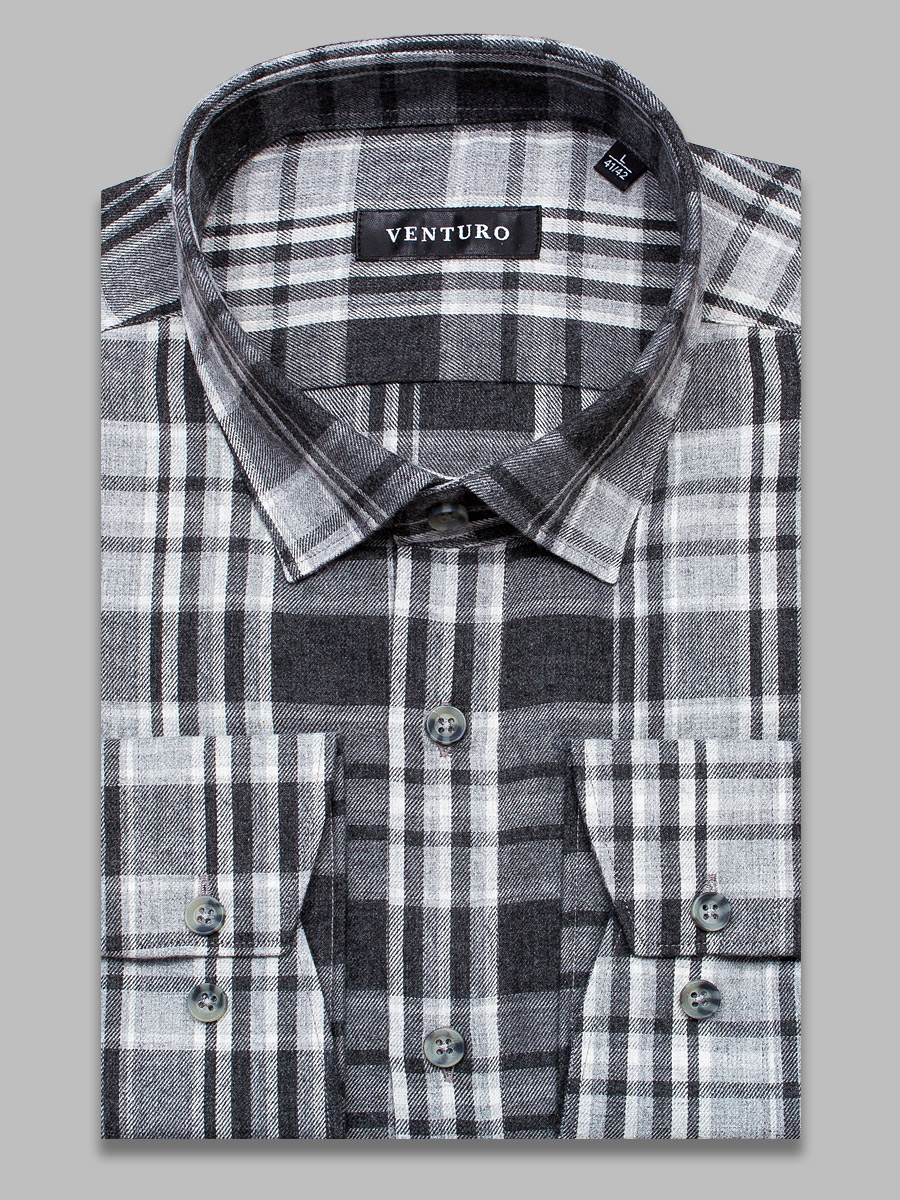 Байковая приталенная мужская рубашка Venturo 4000-051 серого цвета в клетку с длинными рукавами, классическим воротником из натуральной 100% хлопковой ткани. Рубашка Venturo 4000-051: стиль и комфорт в одном изделии Рубашка Venturo 4000-051 выполнена в сером цвете с клетчатым принтом, что придает ей неповторимый и стильный вид. Классический воротник и длинные рукава делают рубашку удобной и функциональной. Натуральная хлопковая ткань Рубашка изготовлена из 100% хлопковой ткани, что гарантирует мягкость, комфорт и долговечность изделия. Натуральная хлопковая ткань обеспечивает отличную воздухопроницаемость и впитывает влагу, что делает рубашку приятной на ощупь и удобной в носке. Прилегающий силуэт рубашки подчеркивает фигуру и делает образ более элегантным. Рубашка Venturo 4000-051 подходит для повседневного использования и сочетается с различными элементами гардероба. Выбирая рубашку Venturo 4000-051, вы получаете стильное, удобное и качественное изделие, которое прослужит вам долгое время и станет незаменимым элементом вашего гардероба.Фотография рубашки в коробке не является публичной офертой, и используется производителем, только в качестве демонстрации изделия с данного ракурса.