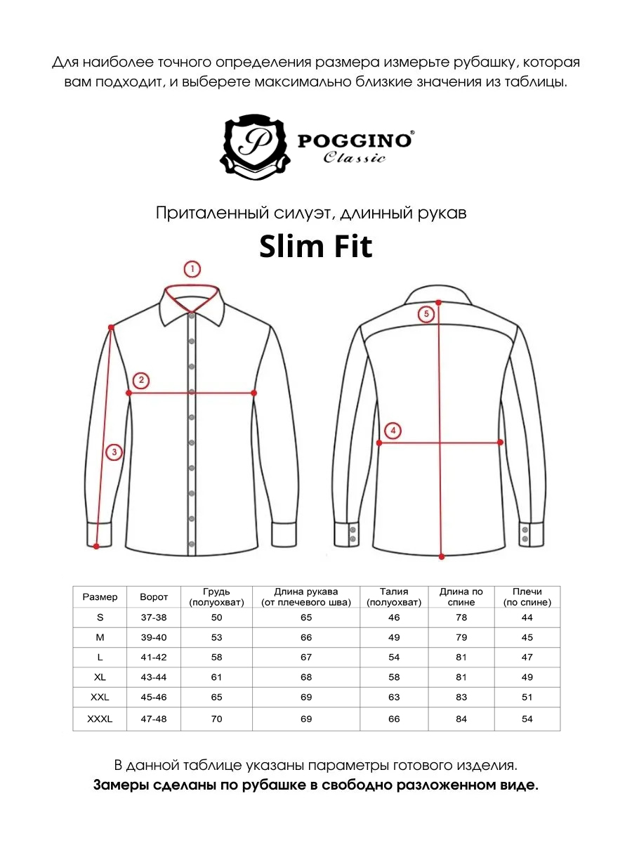 Мерки, в таблице размеров на крайней фотографии, сняты непосредственно с рубашек. Перед оформлением заказа, сверьте данные из таблицы размеров со своей рубашкой.