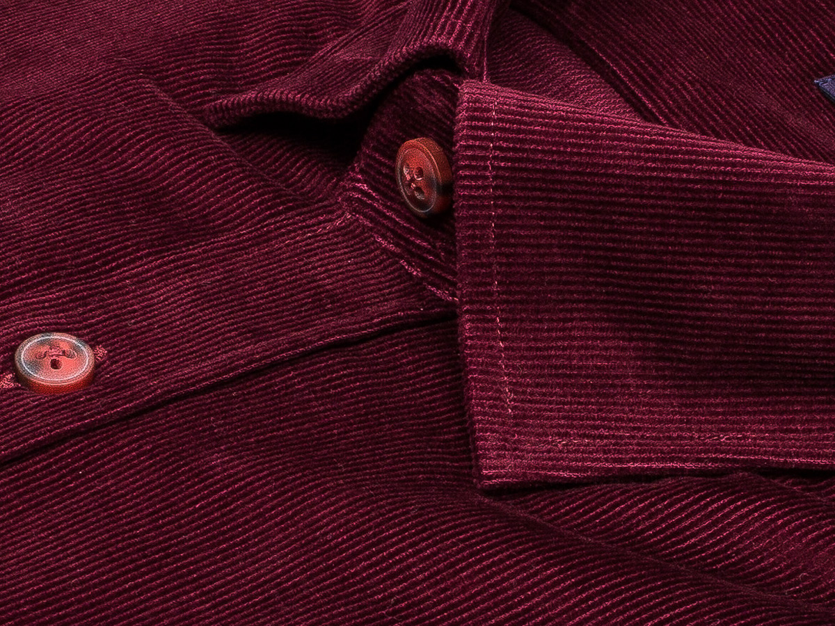 Темно-бордовая вельветовая приталенная рубашка с длинными рукавами