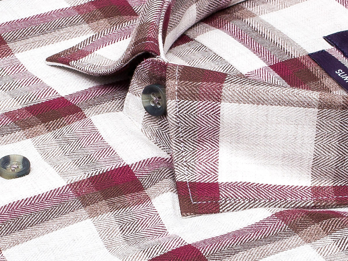 Байковая бордовая приталенная рубашка в клетку с длинными рукавами
