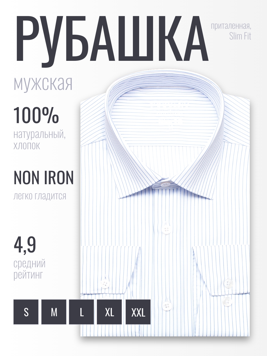 Белая мужская рубашка Non Iron в полоску с длинными рукавами