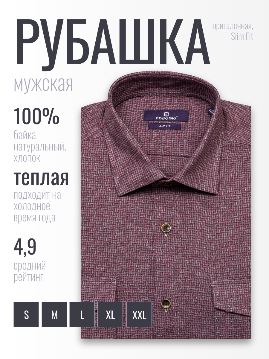Байковая приталенная мужская рубашка Poggino 1000-17 бордового цвета в клетку с длинными рукавами, классическим воротником и двумя нагрудными карманами из натуральной 100% хлопковой ткани. Рубашка Poggino 1000-17: стиль и комфорт в одном изделии Рубашка Poggino 1000-17 выполнена в бордовом цвете с клетчатым принтом, что придает ей неповторимый и стильный вид. Классический воротник и длинные рукава делают рубашку удобной и функциональной. Натуральная хлопковая ткань Рубашка изготовлена из 100% хлопковой ткани, что гарантирует мягкость, комфорт и долговечность изделия. Натуральная хлопковая ткань обеспечивает отличную воздухопроницаемость и впитывает влагу, что делает рубашку приятной на ощупь и удобной в носке. Прилегающий силуэт рубашки подчеркивает фигуру и делает образ более элегантным. Рубашка Poggino 1000-17 подходит для повседневного использования и сочетается с различными элементами гардероба. Выбирая рубашку Poggino 1000-17, вы получаете стильное, удобное и качественное изделие, которое прослужит вам долгое время и станет незаменимым элементом вашего гардероба.Фотография рубашки в коробке не является публичной офертой, и используется производителем, только в качестве демонстрации изделия с данного ракурса.