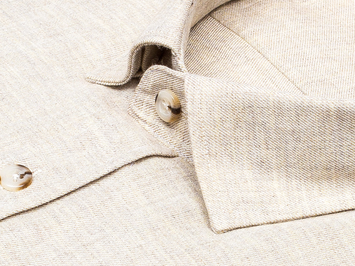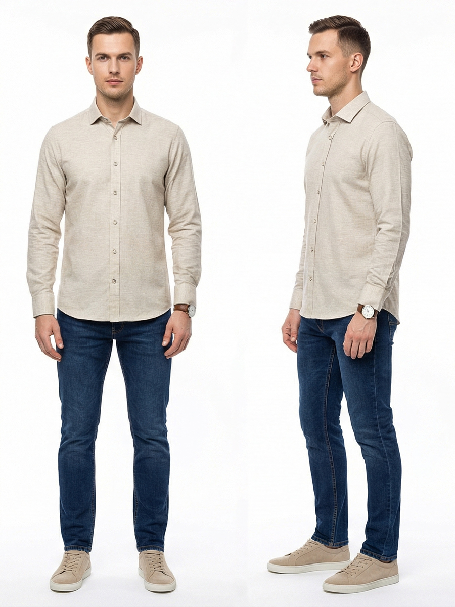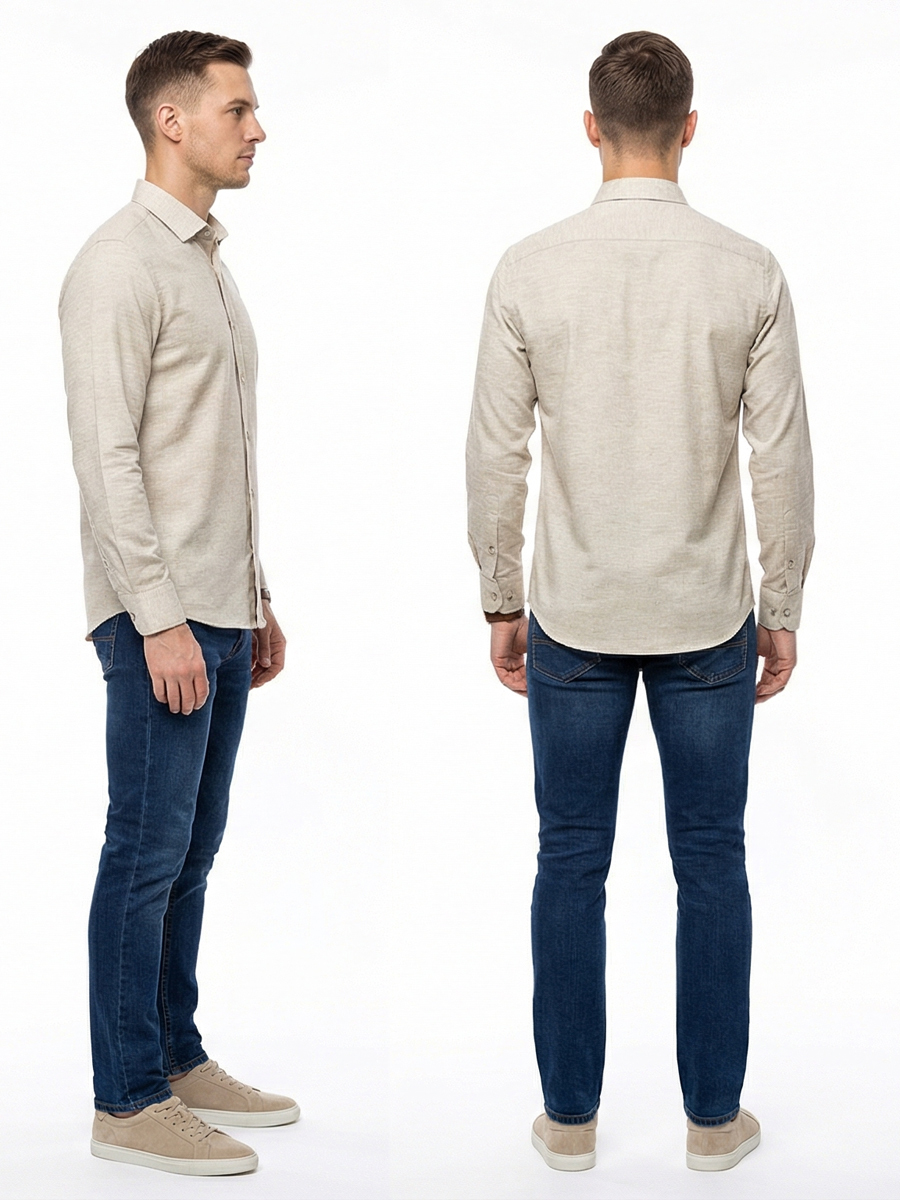 Байковая бежевая приталенная мужская рубашка меланж с длинным рукавом
