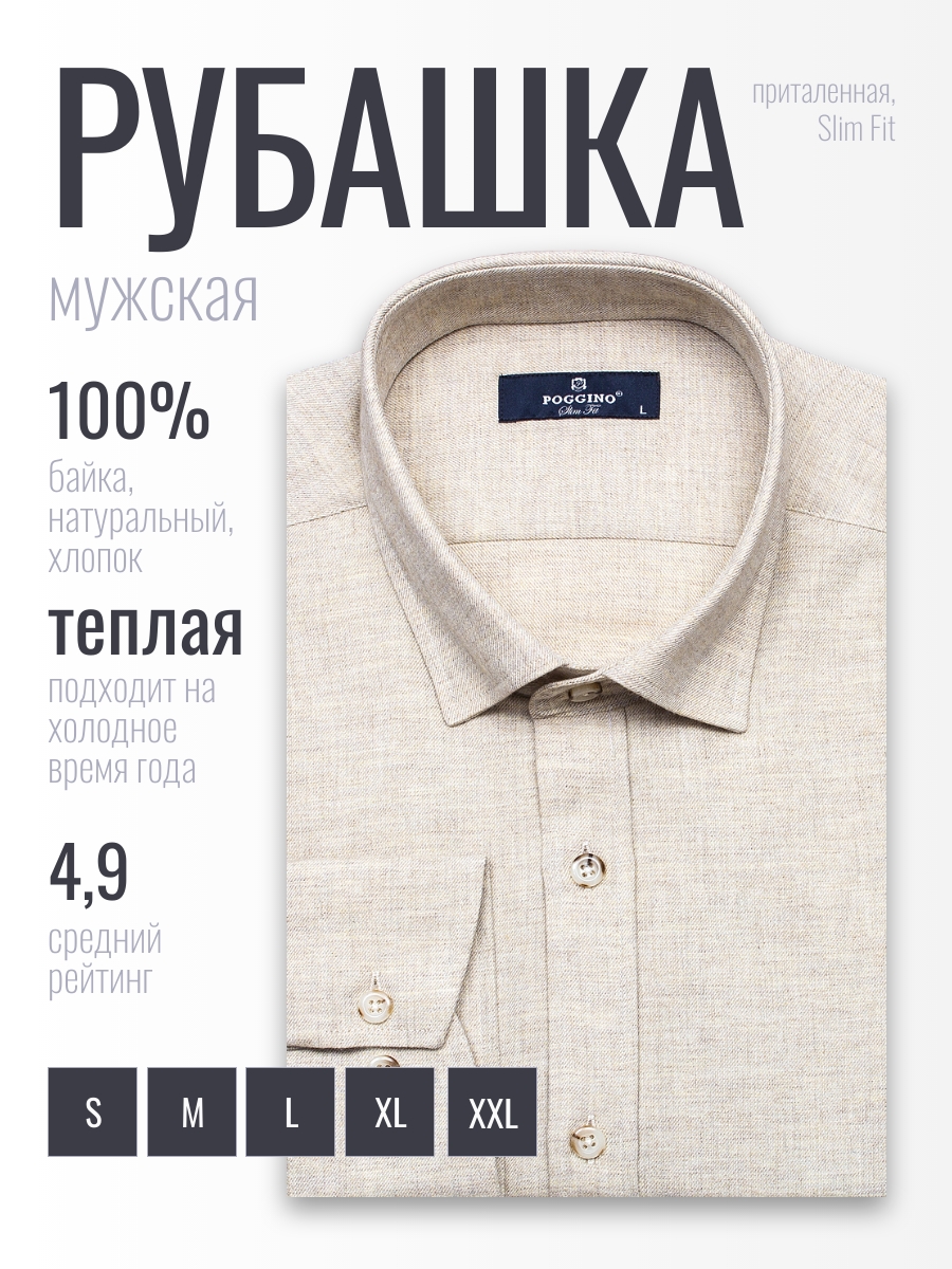 Байковая приталенная мужская рубашка Poggino 4602-01 бежевого цвета меланж с длинными рукавами и классическим воротником из натуральной 100% хлопковой ткани. Рубашка Poggino 4602-01: комфорт и стиль для мужчин. Эта мужская рубашка от Poggino выполнена из 100% хлопковой байки, что гарантирует мягкость и комфорт на ощупь. Приталенный силуэт и длинные рукава. Рубашка имеет приталенный силуэт, что подчеркивает фигуру и делает образ более стильным. Длинные рукава обеспечивают дополнительную защиту от холода и ветра. Классический воротник и застежка на пуговицы. Классический воротник и застежка на пуговицы добавляют элегантности и практичности в использовании. Рубашка Poggino 4602-01 подходит для ношения в любое время года благодаря своему всесезонному дизайну. Модель рубашки не имеет карманов, что делает ее более лаконичной и стильной. Выбирая рубашку Poggino 4602-01, вы получаете качественный и стильный предмет гардероба, который будет служить вам долгое время и радовать своим комфортом.Фотография рубашки в коробке не является публичной офертой, и используется производителем, только в качестве демонстрации изделия с данного ракурса.