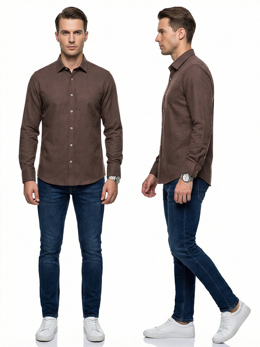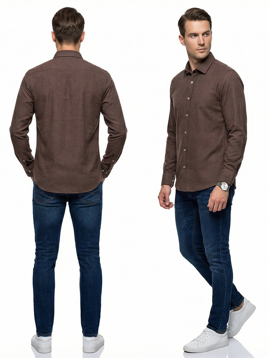 Байковая темно-коричневая мужская рубашка меланж с длинными рукавами