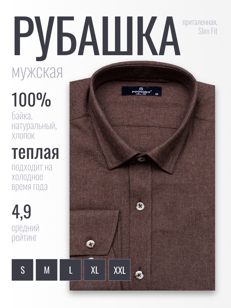 Байковая приталенная мужская рубашка Poggino 4602-07 темно-коричневого цвета меланж с длинными рукавами и классическим воротником из натуральной 100% хлопковой ткани. Рубашка Poggino 4602-07 - это сочетание комфорта и стиля для повседневной жизни. Выполненная в привлекательном темно-коричневом цвете меланж, она добавит яркости и индивидуальности вашему повседневному образу. Изготовленная из 100% хлопковой ткани, рубашка обеспечивает максимальный комфорт и долговечность. Натуральная хлопковая ткань гарантирует мягкость, воздухопроницаемость и гипоаллергенность, что делает рубашку отличным выбором для людей с чувствительной кожей. Прилегающий силуэт и длинные рукава обеспечивают отличную посадку и комфорт при носке. Классический воротник и повседневный стиль делают эту рубашку подходящей для различных случаев и ситуаций. Рубашка Poggino 4602-07 - это выбор для тех, кто ценит комфорт и стиль в повседневной жизни.Фотография рубашки в коробке не является публичной офертой, и используется производителем, только в качестве демонстрации изделия с данного ракурса.