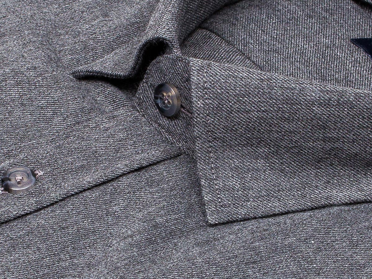 Байковая серая приталенная рубашка меланж с длинным рукавом