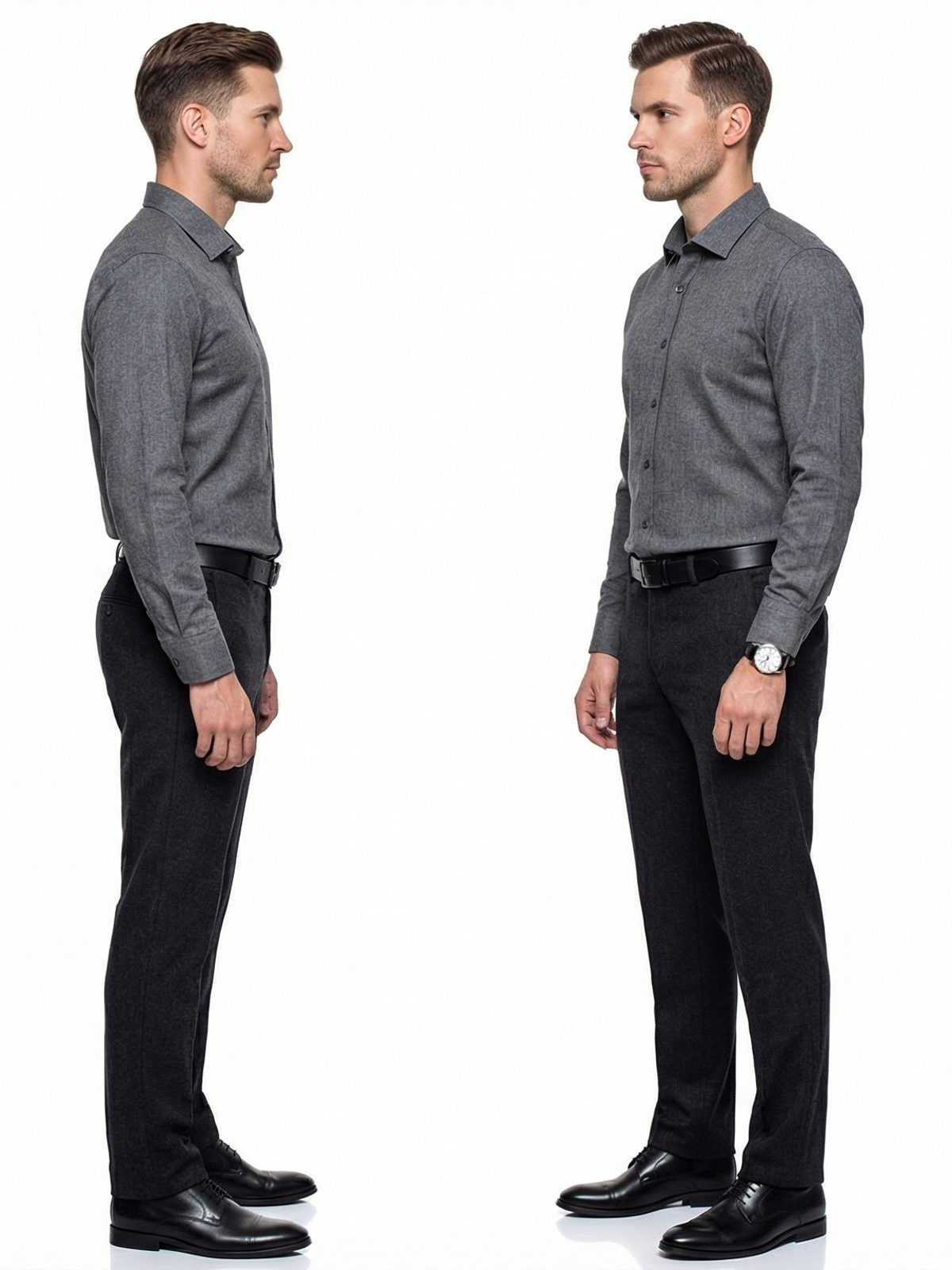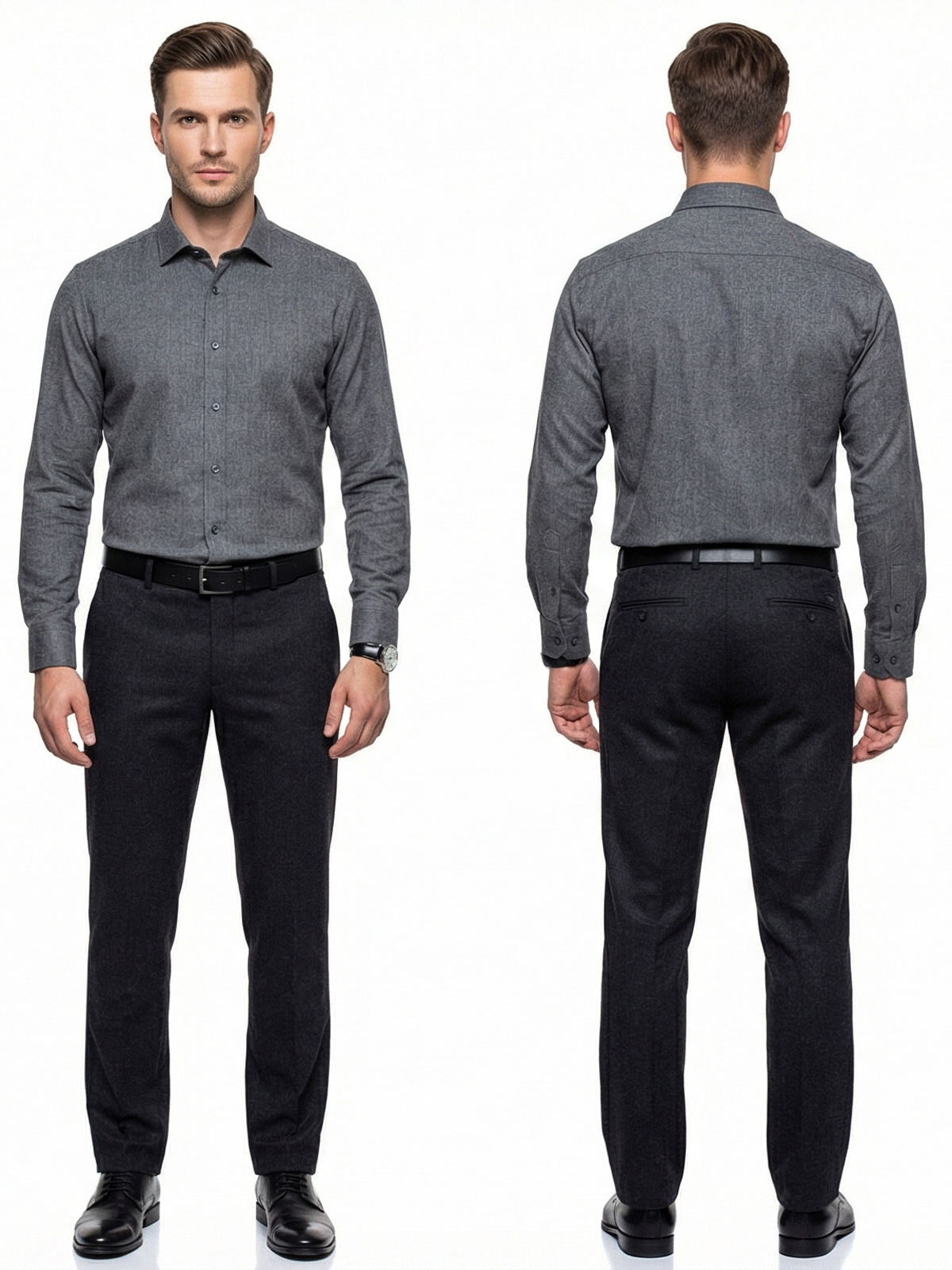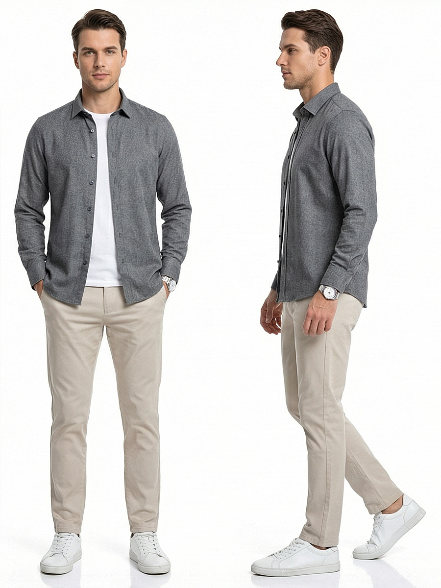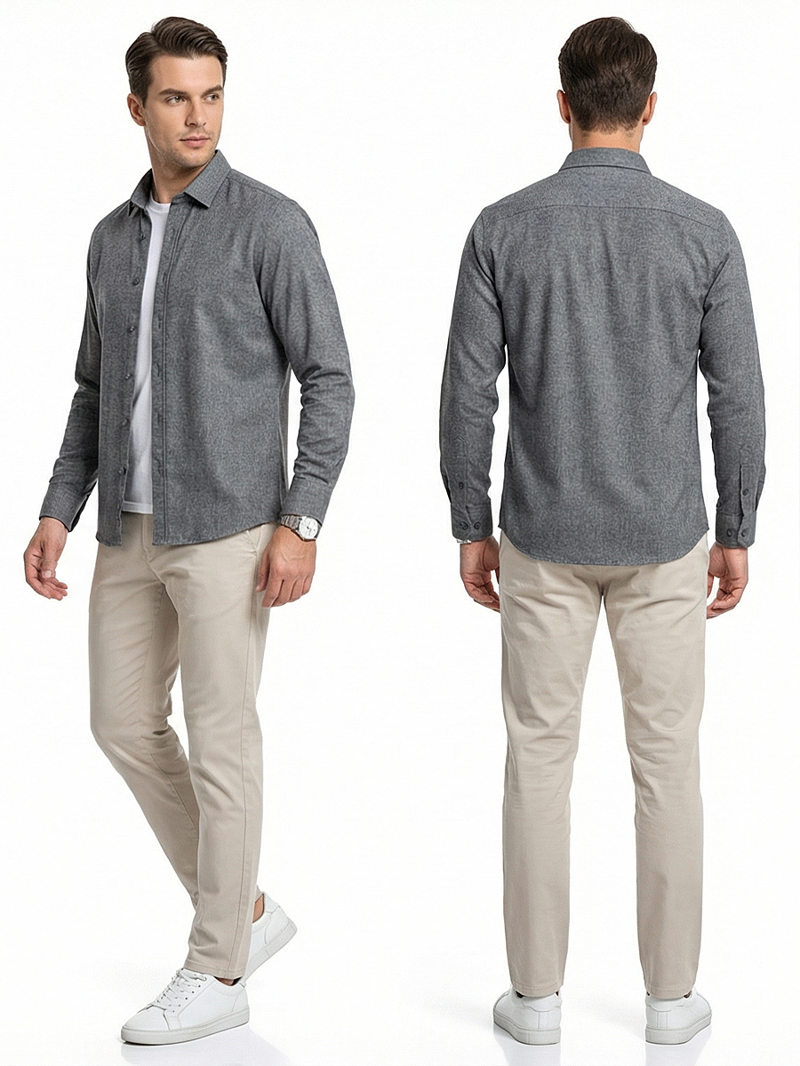 Серый цвет меланж придает рубашке стильный и современный вид, а классический воротник и длинный рукав делают ее удобной для повседневного использования.