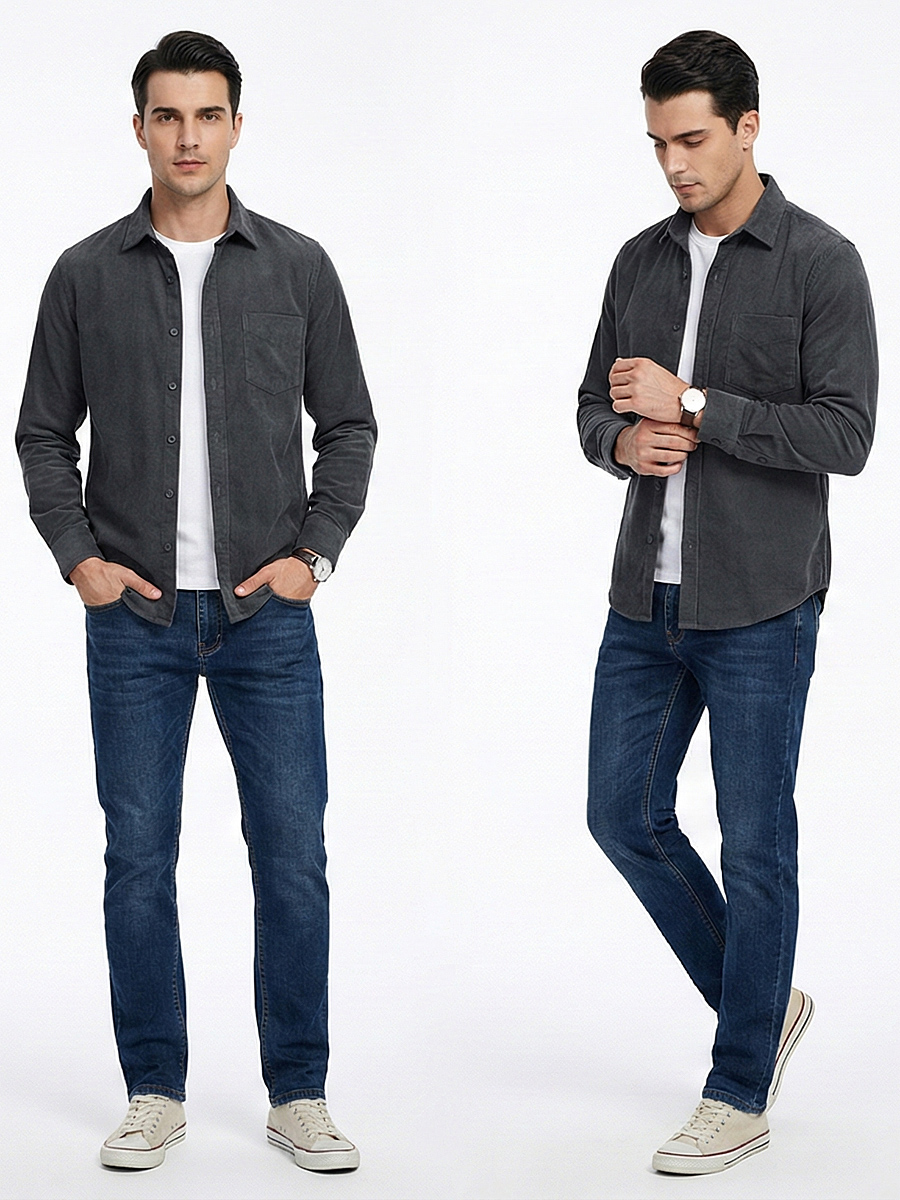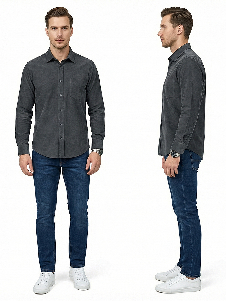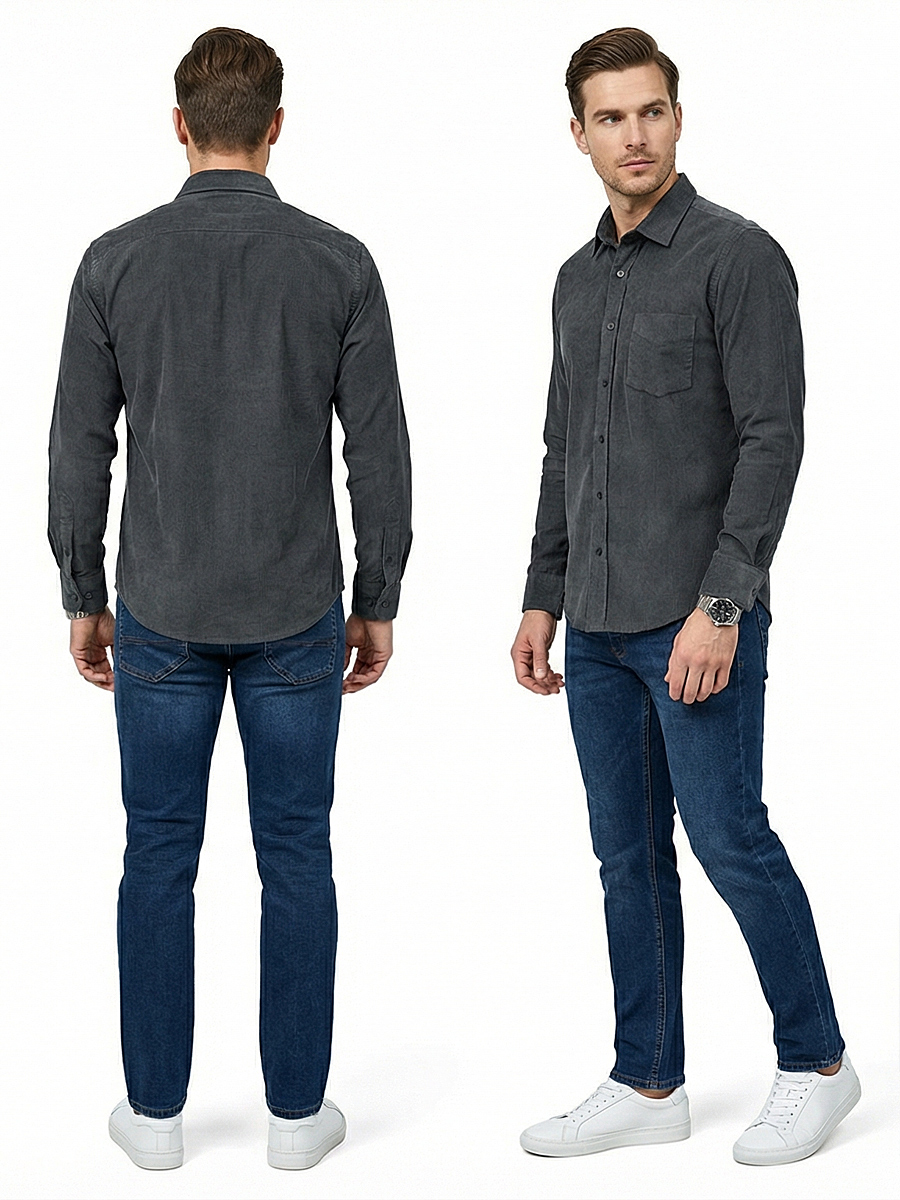 Рубашка выполнена из 100% хлопка, что обеспечивает максимальный комфорт при носке. Вельветовый материал приятен на ощупь и долговечен.