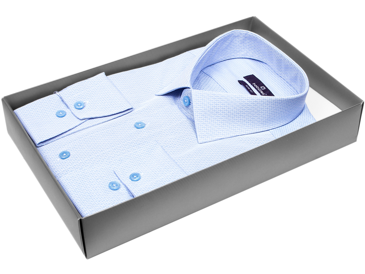 Голубая приталенная мужская рубашка Poggino 8004-021 Non Iron с длинными рукавами